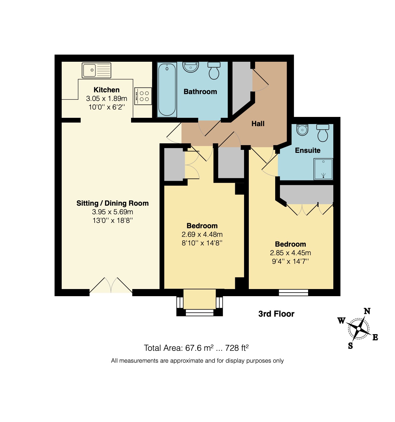 Second-floor apartment – 67.6 m² / 728 sq ft